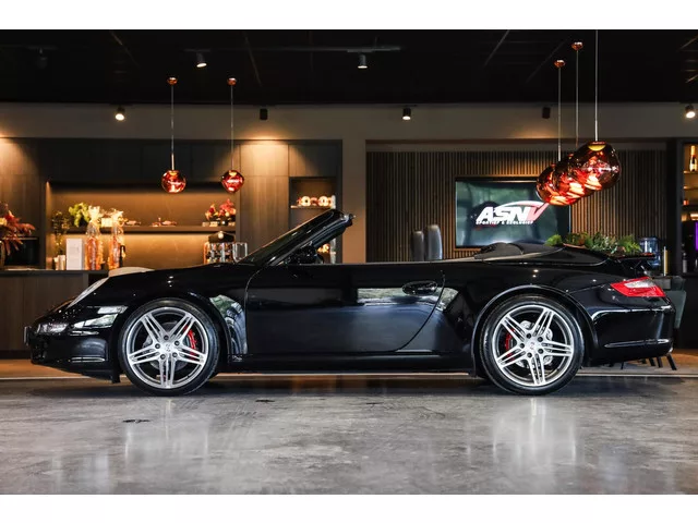 Achterspoiler (elektrisch uitschuifbaar), Aluminium sportpedalen, Bestuurdersinformatiesysteem, Comfort middenarmsteun met opbergmogelijkheid, Driespaaks multifunctioneel leder GT-sportstuurwiel, Elektrisch bedienbaar zwart gestoffeerde cabrioletkap, Elektrische ramen achter, Elektrisch verstelbare lendesteunen, Handgeschakelde 6 versnellingsbak, Instaplijsten aluminium met CARRERA opschrift, Lichtmetalen velgen 19'' (Carrera S Wiel), Mist achterlicht, Porsche Active Suspension Management (PASM), Porsche Communication Management (PCM), Porsche Stability Management - PSM, Portierarmsteunen in leder met stiksels, Sport-Chrono Pakket Plus, Stuurwiel in hoogte en diepte verstelbaar, Van binnen te ontgrendelen achterklep (Elektrisch), Van binnen te ontgrendelen motorkap (Elektrisch), Vloermatten met Porsche-aanduiding, Volautomatische comfort airconditioning, Voorruit met Bandfilter boven, Wijzerplaat toerenteller en Sport Chrono in zwart uitgevoerd, Windscherm achter, Zonnenkleppen met spiegel (verlicht), Zwart stoffen hemelbekleding