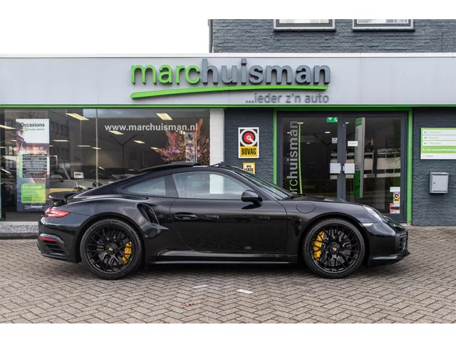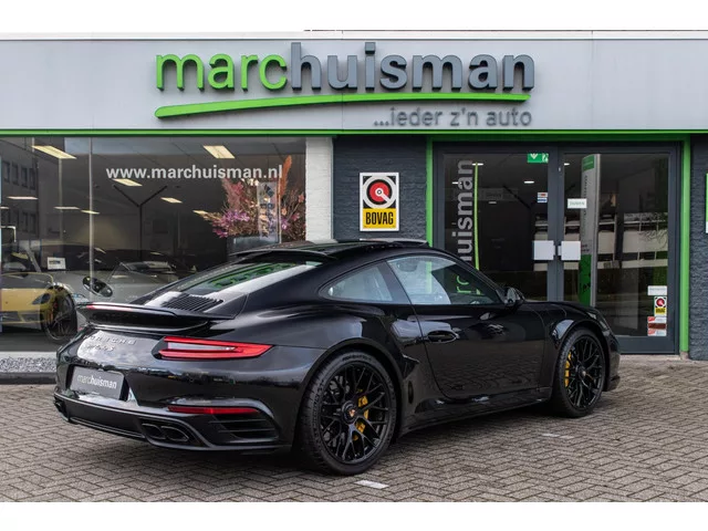 Schitterende Porsche 911 991.2 Coupe 3.8 Turbo S. Uitgerust in Diepzwart metallic i.c.m. zwart lederen bekleding, lederen dashboard en voorzien van de 18-voudig verstelbare sportstoelen met de rugleuningen (achterzijde) in leder. Wielen en ook de luchtinlaatafdekking in glanzend zwart uitgevoerd. Volledig Porsche dealer onderhouden. Voorzien van veel fabrieksopties zoals: Stoelverwarming voor 342. Cruisecontrolsysteem (Cruisecontrol) met Afstandsregeling 456. Rijassistent-systeem Rijstrookwisselassistent 457. Hefsysteem Vooras 474. Rokerpakket 583. Home-Link (Garagedeuropener) 608. Binnenverlichting-pakket / Licht-Designpakket 630. Rijassistent-systeem Verkeerstekenherkenning 631. Rijassistent-systeem Parkeerhulp voor en achter incl. Achteruitrijcamera 638. Schuifdak elektrisch (Glas) 653. Stuurbekrachtiging Plus (snelheidsafhankelijk) 658. Vehicle-Tracking-System Plus (PVTS Plus) 7I2. Vloermatten 810. Radio-ontvangst digitaal (DAB+) QV3. Dorpelafdekking / -bekleding Wagenkleur XAJ...
