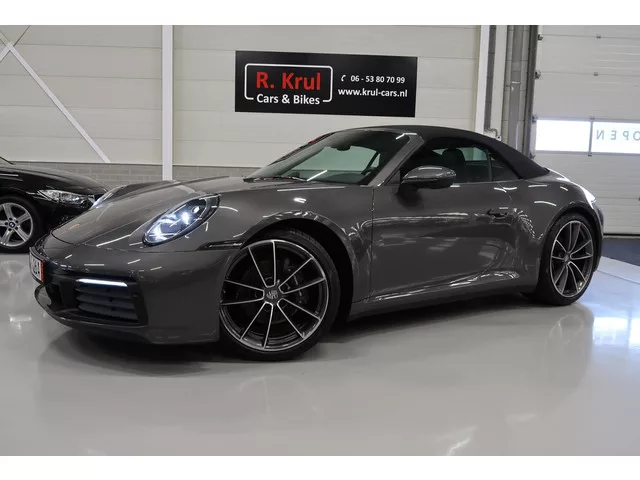 Met trots bieden wij u aan, deze in nieuwstaat verkerende Porsche 992 3.0 Carrera Cabriolet van 09-2021 met 63.000 km gereden. Agaatgrijs met zwart leer. Schadevrij, een schadevrij verleden, volledig Porsche dealer onderhouden (rekeningen zijn aanwezig) en recent groot onderhoud gehad (01-2025 bij 61.000 km) én voorzien van 4 nieuwe Pirelli banden met Porsche codering. De voorzijde van de auto is af fabriek voorzien van beschermende folie ter waarde van € 2.800,-. Daarom ziet de auto er nog als nieuw uit. De velgen zijn onbeschadigd en het interieur is smetteloos. De auto is door de laatste particuliere eigenaar gekocht bij Porsche toen de auto 4 maanden oud was. Daarvoor was de auto ingeschreven op naam van Porsche Stuttgart (Jahreswagen). Op papier zijn er 2 eigenaren vermeld, waarvan dus 1 particulier. De dealer waar de auto geleverd is heeft ook al het onderhoud uitgevoerd. . De rijke uitrusting is secuur samengesteld en beschikt onder andere over: zwart lederen sportstoelen...