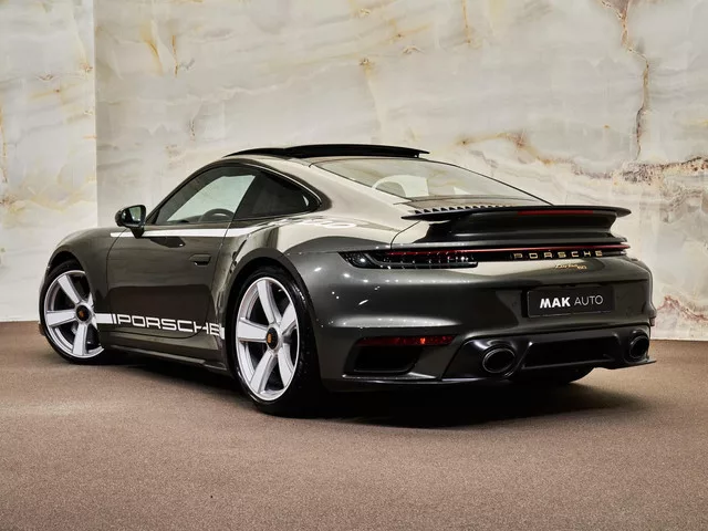 Dit betreft een zeer luxe en sportief uitgevoerde Porsche 911 3.8 Turbo S (651 pk) met Heritage Design pakket 50 Years Turbo. Kleur: Aventuringroen metallic (U4) en interieur: leder zwart met Tartan-inleg. Deze auto heeft slechts 1.163 km gereden en verkeert in absolute nieuwstaat! Uiteraard is alle documentatie aanwezig. Dit betreft gelimiteerd editie nummer 298 van 1974. Nieuwprijs circa € 404.000,-. Voorzien van vele opties zoals: Belangrijkste Opties: 04T: Heritage Design pakket 50 Years Turbo. 9VJ: Burmester® High-End Surround Sound System. 0P5: Sportuitlaatsysteem met sportstaartpijpen in zilver. 3FE: Elektrisch bedienbaar glazen schuifdak. 56D: 20-21 inch Sport Classic wielen in wit/zilver. 8T3: Adaptive Cruise Control. VC2: Garage door opener. Heritage & Design. Het AGS Heritage Design pakket 50 Years Turbo (04T) en het bijpassende '50 years turbo' en 'PORSCHE' decoratieve side logo (ATB) maken van deze auto een echte hommage aan het legendarische Turbo-model uit 1974. De...