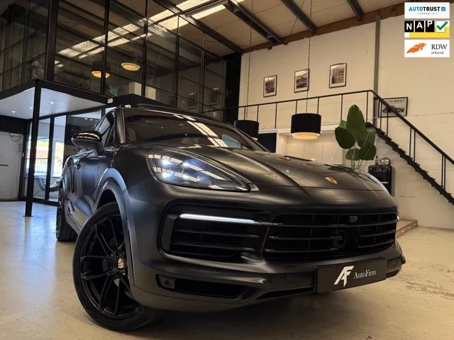 Zeer exclusieve en bomvolle Porsche Cayenne 3.0 E-Hybrid met maar liefst 462 PK! De volledig Matt Zwart uitgevoerde Porsche is in combinatie met zijn hoogglans zwarte velgen, panoramadak, LED verlichting een erg luxe en sportieve verschijning op de weg. De Porsche beschikt over bijna alle denkbare opties zoals o.a. panoramadak, CarPlay, LED verlichting, navigatie, multifunctioneel lederen stuurwiel, voor en achter stoelen verwarmd, voorstoelen met geheugen, voorstoelen elektrisch verstelbaar, regensensor, cruisecontrol, high performance audiosysteem, volledig lederen bekleding, audiotelefoonverbinding via bluetooth, 22 inch lichtmetalen velgen, etc. Voor de volledige optielijst zie hierboven. Eventueel nieuwe apk, onderhoudsbeurt en garantie is mogelijk. Inruil van uw auto, boot, caravan of camper is altijd bespreekbaar. Het is mogelijk bij ons om een voertuig te financieren, vraag naar de mogelijkheden! Bezoek onze website www.autofirm.nl voor meer informatie of neem telefonisch...