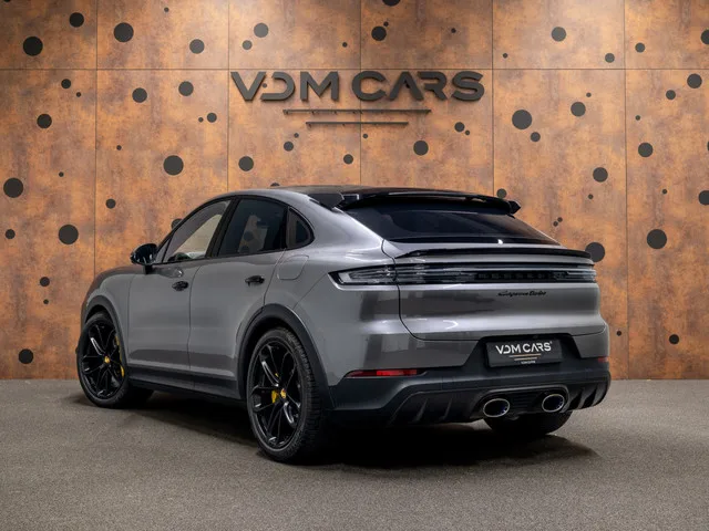 Porsche Cayenne Coupé 4.0 Turbo E-Hybrid GT | Burmester | Achterasbest. | HUD | Nachtzicht | 18-weg |. Exterieur: Kwartsietgrijs metallic. Interieur: Zwart, leder. Eerste toelating: 07-02-2024. Kilometerstand: 21.857 km. Voorzien van onder andere: 'PORSCHE' logo gespoten in hoogglans zwart en modelaanduiding gespoten in hoogglans zwart. 10,9 inch bijrijdersdisplay. 22-inch GT Design-wiel in zijdeglans zwart. 4-zone automatische airconditioning. Achterasbesturing. Adaptieve sportstoelen voor (18-voudig, elektrisch). Autosleutel leder met sleuteletui leder. Burmester® 3D High-End Surround Sound Systeem. Dakbekleding handgrepen Race-Tex. Geluid- en warmtewerend privacyglas. GT-sportstuurwiel in leder met carbon inlay incl. stuurwielverwarming. Head-Up Display. HomeLink®. Interieurpakket stiksels in afwijkende kleur. Interieurpakket stiksels in afwijkende kleur. Ionisator. Led-achterlichten inclusief lichtstrip met getint glas. LED-deurverlichting met 'PORSCHE'-logo. Modellogo op...