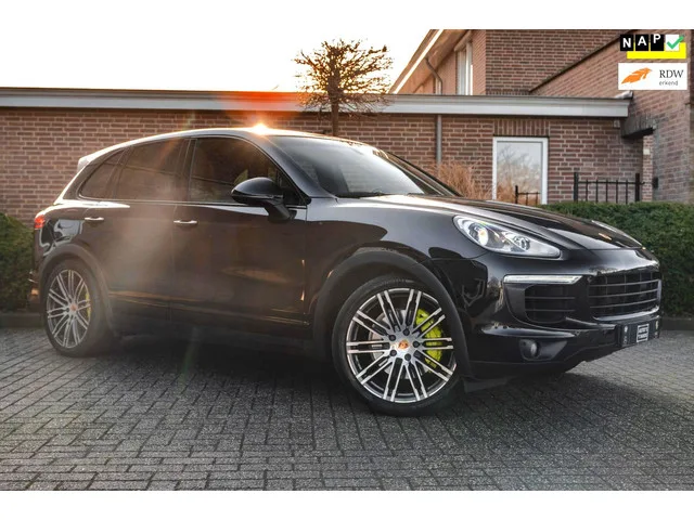 Zeer nette Porsche Cayenne 3.0 S E-Hybrid met gecombineerd 416 PK! Auto is origineel Nederlands geleverd en altijd goed onderhouden. Betreft een zeer rijk uitgeruste Cayenne met opties zoals o.a; 21'' Lm-velgen, Lederen bekleding, Luchtvering, Bose Audio, Cruise-Control, Climate-Control, Stoelverwarming, Achteruitrijcamera, LED dagrijverlichting, LED achterlichten, Elektrische achterklep, Etc. Etc. Plug-in hybride; 8 versn., Automaat; Bandenmaat: 295/35 R21; 245 kW; 6 cilinders; 2.995cc; Gewicht: 2.325kg; Laadvermogen: 725kg; GVW: 3.050kg; Max. trekgewicht: 3.500kg; LxBxH: 486x194x171cm; Wielbasis: 290cm; Accu: 10kWh; Accu laden: Type 2, 1-fase, 3.7 kW, 2 uur en 42 minuten; 0-100 km/h: 5,9s; Topsnelheid: 243km/u; Interieurkleur: zwart; 5 zitplaatsen; 3,3 l/100km; 28,421052631579 kWh/100km; 79 g/km CO₂; Energielabel A; Euro 6; Onderhoudsboekjes aanwezig; APK: tot jul. 2026; 2 sleutels; Wegenbelasting: € 468-€ 512p/kwrt; Beschikbare afleverpakketten: Afleverpakket (1) (zonder...
