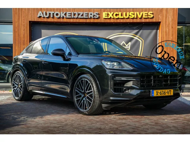 Zondag a.s. open! Porsche Cayenne E-Hybrid Coupé 3.0 Tiptronic S | 470 pk | SportDesign Carbon | 4x Display incl. Passagiersdisplay & HUD. Uniek samengesteld en tot in de perfectie uitgevoerd – deze Porsche Cayenne E-Hybrid Coupé is afkomstig van de eerste eigenaar, nieuw geleverd door Porsche Centrum Twente en verkeert in absolute topstaat. Met slechts 29.229 km op de teller en nog fabrieksgarantie tot 23 februari 2026 is dit een buitenkans voor wie alleen genoegen neemt met het allerbeste. ? Nieuwprijs: € 182.035,-. ? Basisprijs: € 145.170,-. ? Opties & extra’s: ruim € 36.000,-. ⭐ Belangrijkste highlights. Slechts 29.229 km – nauwelijks ingereden; Fabrieksgarantie t/m 23-02-2026; Eerste eigenaar, volledig Porsche-dealer onderhouden; SportDesign pakket met carbon – exclusieve en sportieve uitstraling; Chromitezwart metallic met zwart leder & carbon interieurafwerking; Passagiersdisplay. ; Verwarmde én gekoelde voorstoelen – ultiem comfort het hele jaar door; Achterasbesturing en...