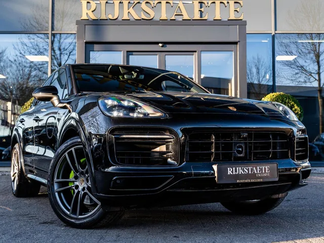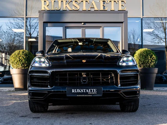 Porsche Cayenne Coupé 3.0 E-Hybrid|PANO|360°|MEMORY|CHRONO. Merk: Porsche; Model: Cayenne Coupé; APK tot: 23-12-2027; Tellerstand: 36507 KM; Carrosserievorm: SUV; Aantal deuren: 5; Brandstofsoort: Hybride (Elektrisch/Benzine); Bouwjaar: 2021; Transmissie: Automaat; Kleur: zwart Metallic; Bekleding: Leder; Kleur interieur: zwart; Motorinhoud: 2995 cc; Aantal cilinders: 6; Motorcode: DCB; Vermogen: 250 kW / 341pk; Ledig gewicht: 2335 kg; Max. trekgewicht: 3500 kg; Aantal zitplaatsen: 5; Verbruik: 3.2 l/100 km; BTW/Marge: BTW aftrekbaar, de prijs is inclusief BTW; Lengte: 493 cm; Breedte: 198 cm; Aantal sleutels: 2; Onderhoudshistorie aanwezig: Dealer onderhouden; Motorrijtuigenbelasting: € 468 - 512 per kwartaal; Emissieklasse: Euro 6. Comfort. Cruise control; Regensensor. Exterieur. 360° Camera; Adaptief demping systeem; Aluminium delen exterieur; Buitenspiegels elektrisch inklapbaar; Buitenspiegels elektrisch verstel- en verwarmbaar; Buitenspiegels elektrisch verstelbaar...