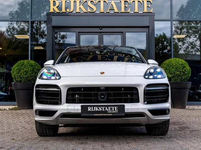 Porsche Cayenne 3.0 E-Hybrid|PANO|BOSE|360°|MEMORY|SFEERVERL. Merk: Porsche; Model: Cayenne; APK tot: 31-03-2026; Tellerstand: 110110 KM; Carrosserievorm: SUV; Aantal deuren: 5; Brandstofsoort: Hybride (Elektrisch/Benzine); Bouwjaar: 2022; Transmissie: Automaat; Kleur: grijs; Bekleding: Leder; Kleur interieur: zwart; Motorinhoud: 2995 cc; Aantal cilinders: 6; Motorcode: DCB; Vermogen: 250 kW / 341pk; Ledig gewicht: 2335 kg; Max. trekgewicht: 3500 kg; Aantal zitplaatsen: 5; Verbruik: 3.1 l/100 km; BTW/Marge: Marge, de BTW is niet aftrekbaar; Lengte: 493 cm; Breedte: 198 cm; Aantal sleutels: 2; Onderhoudshistorie aanwezig: Dealer onderhouden; Motorrijtuigenbelasting: € 468 - 512 per kwartaal; Emissieklasse: Euro 6. Comfort. Cruise control; Regensensor. Exterieur. 360° Camera; Achterruitwisser; Adaptief demping systeem; Aluminium delen exterieur; Buitenspiegels elektrisch inklapbaar; Buitenspiegels elektrisch verstel- en verwarmbaar; Buitenspiegels elektrisch verstelbaar...