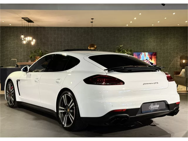 Zeer rijk uitgeruste Porsche Panamera 4.8 V8 GTS 441pk Facelift. Onderscheidende opties: * GTS uitvoering af fabriek. * Luchtvering. * ACC ( Adaptive cruisecontrol). * 360 view camera. * Carbon interieurlijsten. * Alcantara Hemelbekleding. * Stoelverwarming en koeling. * Schuif-/kanteldak. * Lederen Dashboard. * Sport Chrono pakket. * 20-inch Lichtmetalen velgen. * Rode remklauwen. * Uitlaatklep af fabriek. Bijzonderheden: * Facelift uitvoering. * Bouwjaar 2016. * Alle boordliteratuur en 2 sleutels aanwezig. Openingstijden: Maandag en dinsdag op afspraak. Woensdag t/m zaterdag van 10.00 tot 17.00 uur. 7 versn., Automaat; Modeljaar: 2013; 4WD; 324 kW; 520 Nm; 8 cilinders; 4.806cc; Gewicht: 1.900kg; Laadvermogen: 600kg; GVW: 2.500kg; Max. trekgewicht: 2.200kg; LxBxH: 502x193x141cm; Wielbasis: 292cm; 100l tank; 0-100 km/h: 4,4s; Topsnelheid: 288km/u; Interieurkleur: zwart; 4 zitplaatsen; 10,3 l/100km; 15,2 l/100km; 7,5 l/100km; 239 g/km CO₂; Energielabel G; Euro 6; Onderhoudsboekjes...
