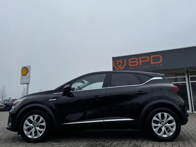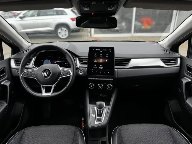 Renault Captur 1.6 E-Tech Plug-in Hybrid 160 Intens|Nav|Cam|. Kenteken: K-570-VB; Merk: Renault; Model: Captur; APK tot: 15-03-2027; Tellerstand: 89384 KM; Carrosserievorm: SUV; Aantal deuren: 5; Brandstofsoort: Hybride (Elektrisch/Benzine); Bouwjaar: 2021; Transmissie: Automaat; Kleur: zwart Metallic; Bekleding: Leder/Stof; Kleur interieur: grijs; Motorinhoud: 1598 cc; Aantal cilinders: 4; Motorcode: H4M B6; Vermogen: 117 kW / 159pk; Ledig gewicht: 1539 kg; Max. trekgewicht: 750 kg; Aantal zitplaatsen: 5; Verbruik: 1.3 l/100 km; BTW/Marge: BTW aftrekbaar, de prijs is inclusief BTW; Lengte: 423 cm; Breedte: 180 cm; Motorrijtuigenbelasting: € 253 - 276 per kwartaal; Emissieklasse: Euro 6. Pakket: Pack parking. Achteruitrijcamera; Parkeersensor voor en achter. Comfort. Boordcomputer; Cruise control; Regensensor. Exterieur. Achterruitwisser; Achterspoiler; Andere dakkleur; Buitenspiegels elektrisch inklapbaar; Buitenspiegels elektrisch verstel- en verwarmbaar; Centrale vergrendeling...