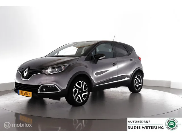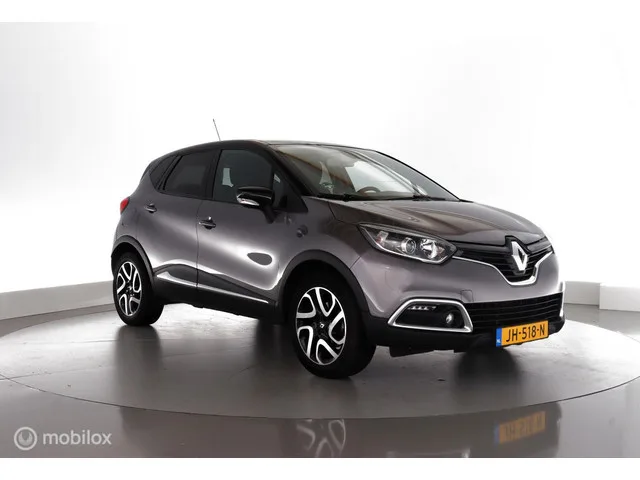 Renault Captur 1.2 TCe 120PK Automaat Dynamique trekhaak|cam|ecc|pdc|lmv17. Kenteken: JH-518-N; Merk: Renault; Model: Captur; APK tot: 31-03-2026; Tellerstand: 124005 KM; Carrosserievorm: SUV; Aantal deuren: 5; Brandstofsoort: Benzine; Bouwjaar: 2016; Transmissie: Automaat 6-Traps; Kleur: grijs Metallic; Kleurnaam: Two-tone Gris Casiopée met Zwart Metallic DakMetallic; Bekleding: Stof; Motorinhoud: 1197 cc; Aantal cilinders: 4; Motorcode: H5F G4; Vermogen: 87 kW / 118pk; Ledig gewicht: 1159 kg; Max. trekgewicht: 1200 kg; Aantal zitplaatsen: 5; Verbruik: 5.5 l/100 km; BTW/Marge: Marge, de BTW is niet aftrekbaar; Lengte: 412 cm; Breedte: 178 cm; Hoogte: 1566 cm; Aantal sleutels: 2; Onderhoudshistorie aanwezig: Ja; Motorrijtuigenbelasting: € 172 - 188 per kwartaal; Emissieklasse: Euro 6; Bandenmaat voor: 205/60/17; Bandemaat achter: 205/60/17; Wielbasis: 261 mm. Comfort. Boordcomputer; Cruise control; Regensensor. Exterieur. Achterruitwisser; Andere dakkleur; Buitenspiegel rechts...