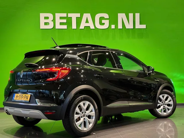 Renault Captur 1.3 TCe 130 Intens | Panoramadak | Navigatie |. Kenteken: H-119-PN; Merk: Renault; Model: Captur; APK tot: 03-02-2027; Tellerstand: 91236 KM; Carrosserievorm: SUV; Aantal deuren: 5; Brandstofsoort: Benzine; Bouwjaar: 2020; Transmissie: Automaat; Kleur: zwart Metallic; Motorinhoud: 1330 cc; Aantal cilinders: 4; Motorcode: H5H B4; Vermogen: 96 kW / 131pk; Ledig gewicht: 1234 kg; Max. trekgewicht: 1500 kg; Aantal zitplaatsen: 5; Verbruik: 5.5 l/100 km; BTW/Marge: BTW aftrekbaar, de prijs is inclusief BTW; Lengte: 423 cm; Breedte: 180 cm; Aantal sleutels: 2; Onderhoudshistorie aanwezig: Ja; Motorrijtuigenbelasting: € 164 - 179 per kwartaal; Emissieklasse: Euro 6. Comfort. Boordcomputer; Cruise control; Regensensor. Exterieur. Achterspoiler; Andere dakkleur; Buitenspiegels elektrisch inklapbaar; Buitenspiegels elektrisch verstel- en verwarmbaar; Dimlichten automatisch; Extra getint glas achter; Glazen schuifdak; Keyless entry; LED achterlichten; LED dagrijverlichting; LED...