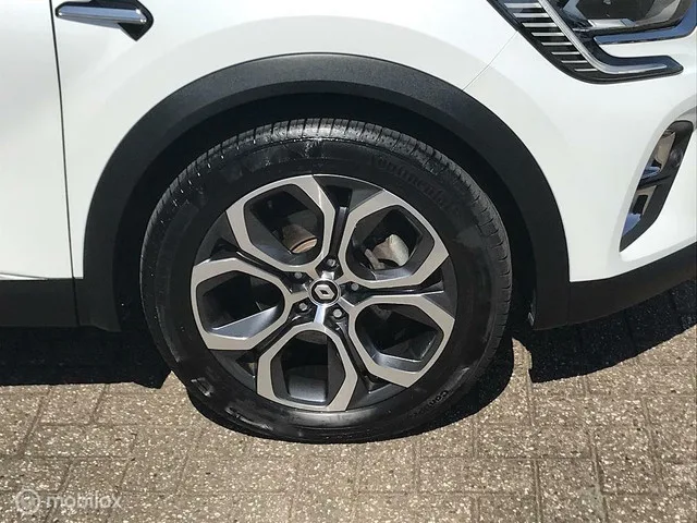 Renault Captur 1.6 E-Tech Plug-in Hybrid 160 Intens. Kenteken: HNT-11-P; Merk: Renault; Model: Captur; Tellerstand: 114782 KM; Carrosserievorm: SUV; Aantal deuren: 5; Brandstofsoort: Hybride (Elektrisch/Benzine); Bouwjaar: 2022; Transmissie: Automaat; Kleur: wit Parelmoer; Bekleding: Leder/Stof; Kleur interieur: zwart; Motorinhoud: 1598 cc; Aantal cilinders: 4; Vermogen: 68 kW / 93pk; Vermogen verbrandingsmotor: 49 kW; Ledig gewicht: 1516 kg; Max. massa voertuig: 2057 kg; Max. trekgewicht: 750 kg; Aantal zitplaatsen: 5; Verbruik: 1.3 l/100 km; BTW/Marge: BTW aftrekbaar, de prijs is inclusief BTW; Lengte: 4227 cm; Breedte: 1797 cm; Aantal sleutels: 2; Onderhoudshistorie aanwezig: Ja; Emissieklasse: Euro 6; Velgmaat: 17 inch; Wielbasis: 2639 mm. Pakket: Pack Easy Link. Audio installatie premium; Audio-navigatie full map. Pakket: Pack parking. Achteruitrijcamera; Parkeersensor voor en achter. Comfort. Boordcomputer; Cruise control; Regensensor. Exterieur. Achterruitwisser...