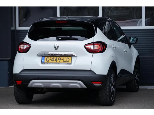 Renault Captur 1.3 TCe Intens, NL, aut. leder, dodehoek, cam. Kenteken: G-449-LD; Merk: Renault; Model: Captur; APK tot: 25-10-2027; Tellerstand: 83993 KM; Carrosserievorm: SUV; Aantal deuren: 5; Brandstofsoort: Benzine; Bouwjaar: 2019; Transmissie: Automaat; Kleur: wit Parelmoer; Bekleding: Leder; Motorinhoud: 1330 cc; Aantal cilinders: 4; Motorcode: H5H B4; Vermogen: 110 kW / 150pk; Ledig gewicht: 1243 kg; Max. trekgewicht: 1200 kg; Aantal zitplaatsen: 5; Verbruik: 5.5 l/100 km; BTW/Marge: BTW aftrekbaar, de prijs is inclusief BTW; Lengte: 412 cm; Breedte: 178 cm; Hoogte: 1566 cm; Aantal sleutels: 2; Onderhoudshistorie aanwezig: Dealer onderhouden; Motorrijtuigenbelasting: € 172 - 188 per kwartaal; Emissieklasse: Euro 6. Pakket: Easy Life Pack. Achteruitrijcamera; Dodehoek detectie; Parkeer assistent; Parkeersensor voor. Comfort. Boordcomputer; Cruise control; Regensensor. Exterieur. Achterruitwisser; Achterspoiler; Andere dakkleur; Buitenspiegels elektrisch inklapbaar...