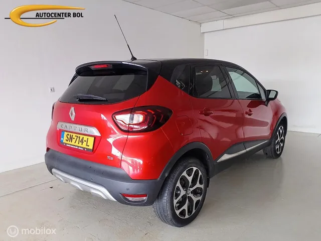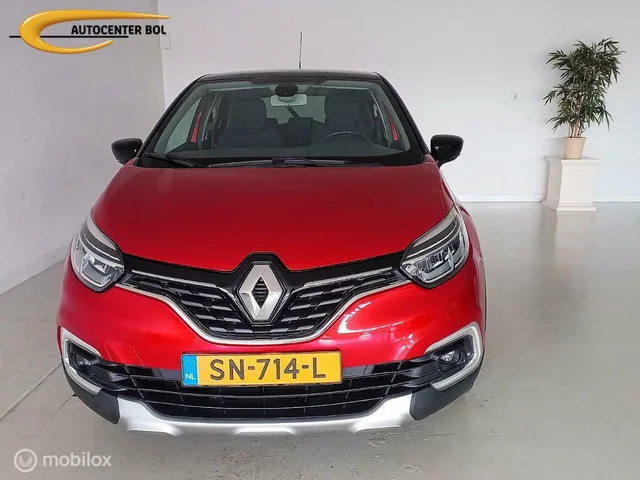 Renault Captur 0.9 TCe Intens NAV|CL C|Cr C|LMV|Keyless. Kenteken: SN-714-L; Merk: Renault; Model: Captur; Tellerstand: 61734 KM; Carrosserievorm: SUV; Aantal deuren: 5; Brandstofsoort: Benzine; Bouwjaar: 2017; Transmissie: Handgeschakeld; Kleur: rood; Motorinhoud: 898 cc; Aantal cilinders: 3; Motorcode: H4B B4; Vermogen: 66 kW / 90pk; Ledig gewicht: 1148 kg; Max. trekgewicht: 1200 kg; Aantal zitplaatsen: 5; Verbruik: 5.1 l/100 km; BTW/Marge: Marge, de BTW is niet aftrekbaar; Lengte: 412 cm; Hoogte: 1566 cm; Motorrijtuigenbelasting: € 139 - 151 per kwartaal; Emissieklasse: Euro 6. Comfort. Boordcomputer; Cruise control; Regensensor. Exterieur. Achterspoiler; Andere dakkleur; Buitenspiegels elektrisch inklapbaar; Buitenspiegels elektrisch verstel- en verwarmbaar; Chroom delen exterieur; Dimlichten automatisch; Extra getint glas achter; Keyless entry; LED achterlichten; LED dagrijverlichting; LED koplampen; Lichtmetalen velgen 17"; Mistlampen voor adaptief; Parkeersensor achter...