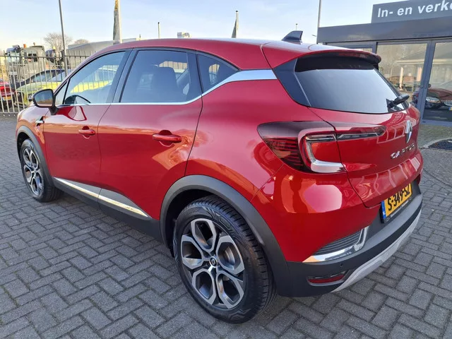 Renault Captur 1.0 TCe Zen panorama schuifdak. Kenteken: S-349-SZ; Merk: Renault; Model: Captur; APK tot: 31-01-2026; Tellerstand: 22502 KM; Carrosserievorm: SUV; Aantal deuren: 5; Brandstofsoort: Benzine; Bouwjaar: 2022; Transmissie: Handgeschakeld; Kleur: rood Metallic; Motorinhoud: 999 cc; Aantal cilinders: 3; Vermogen: 67 kW / 91pk; Ledig gewicht: 1157 kg; Max. trekgewicht: 1200 kg; Aantal zitplaatsen: 5; Verbruik: 5.8 l/100 km; BTW/Marge: Marge, de BTW is niet aftrekbaar; Onderhoudshistorie aanwezig: Ja; Motorrijtuigenbelasting: € 164 - 179 per kwartaal. Bijzondere opties & accessoires. Apple Carplay/Android Auto. Pakket: Pack Comfort. Airco automatisch; Buitenspiegels elektrisch inklapbaar; Keyless entry/start; Passagiersstoel in hoogte verstelbaar; Regensensor. Comfort. Boordcomputer; Cruise control; Regensensor. Exterieur. 18'' Lichtmetalen Velgen ; Achterspoiler; Buitenspiegels elektrisch inklapbaar; Buitenspiegels elektrisch verstel- en verwarmbaar; Centrale vergrendeling...