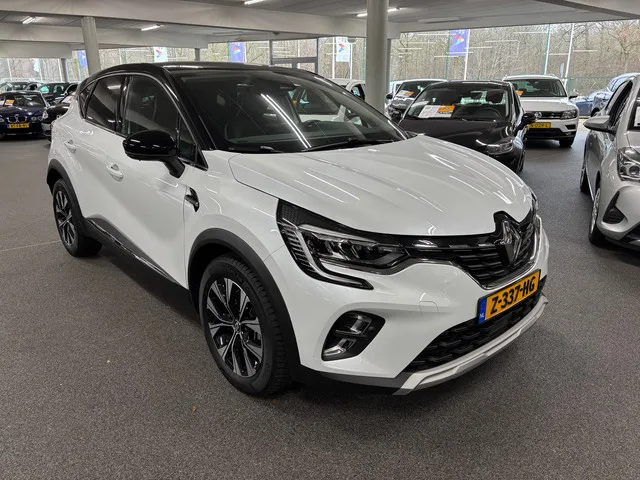 Renault Captur 1.6 E-Tech plug-in hybrid 160 techno met Schuifdak, Verwarmde Voorstoelen, Digitaal Dashboard, Camera, Climat/Cruise Control, Apple/Android Carplay, LM-velgen enz. Plug-in hybride; 8 versn., Automaat; 4WD; Bandenmaat: 215/55 R18; 68 kW; 4 cilinders; 1.598cc; Gewicht: 1.514kg; Laadvermogen: 543kg; GVW: 2.057kg; Max. trekgewicht: 750kg; LxBxH: 423x180x158cm; Wielbasis: 264cm; Accu: 10kWh; Accu laden: Type 2, 1-fase, 3.7 kW; 0-100 km/h: 10,1s; Topsnelheid: 173km/u; Interieurkleur: Donkerblauw; 5 zitplaatsen; 1,3 l/100km; 21,428571428571 kWh/100km; 27 g/km CO₂; Energielabel A; Euro 6; Dealer onderhouden (onderhoudsboekjes aanwezig); APK: tot apr. 2028; Schadevrij; 2 sleutels (2 handzenders); Wegenbelasting: € 253-€ 276p/kwrt; Optioneel afleverpakket: Bovag 12 mnd (€ 595); Z-337-HG