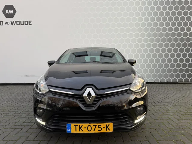 Renault Clio 0.9 TCe Limited Trekhaak LED. Kenteken: TK-075-K; Merk: Renault; Model: Clio; APK tot: 28-08-2026; Tellerstand: 123087 KM; Carrosserievorm: Hatchback; Aantal deuren: 5; Brandstofsoort: Benzine; Bouwjaar: 2018; Transmissie: Handgeschakeld; Kleur: zwart Metallic; Bekleding: Stof; Kleur interieur: zwart; Motorinhoud: 898 cc; Aantal cilinders: 3; Motorcode: H4B B4; Vermogen: 66 kW / 90pk; Ledig gewicht: 1057 kg; Max. trekgewicht: 1200 kg; Aantal zitplaatsen: 5; Verbruik: 4.2 l/100 km; BTW/Marge: Marge, de BTW is niet aftrekbaar; Lengte: 406 cm; Breedte: 173 cm; Hoogte: 1448 cm; Aantal sleutels: 2; Onderhoudshistorie aanwezig: Ja; Motorrijtuigenbelasting: € 140 - 154 per kwartaal; Emissieklasse: Euro 6. Bijzondere opties & accessoires. Airco. Pakket: Pack Comfort. Airco automatisch; Buitenspiegels elektrisch inklapbaar; Dimlichten automatisch; Regensensor. Comfort. Boordcomputer; Cruise control; Regensensor. Exterieur. Achterruitwisser; Achterspoiler; Buitenspiegels...