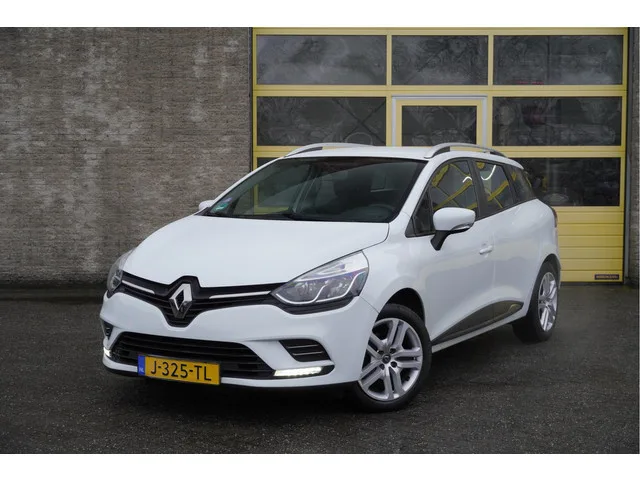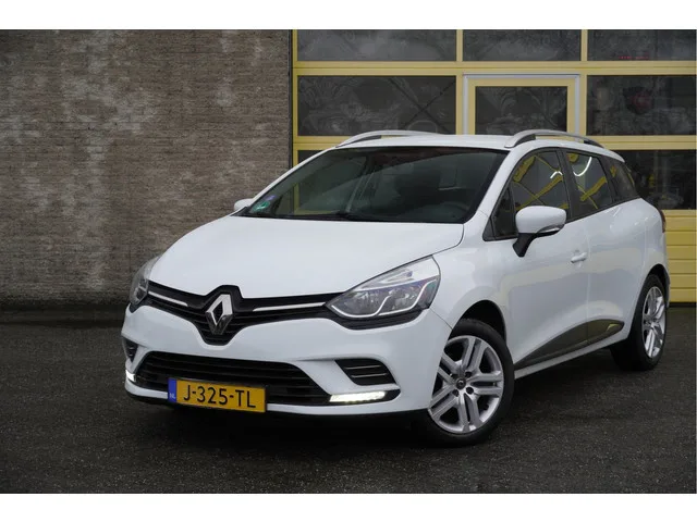 Renault Clio Estate met de zeer luxe aanwezige opties als Led dagrijverlichting | Navigatiesysteem | Airco | Cruise control | Getint glas. Meer informatie: Transmissie: 5 versnellingen, Handgeschakeld; Modeljaar: 2018; Vierwielaandrijving; Vermogen: 66 kW (90 PK); Koppel: 140 Nm; Aantal cilinders: 3; Motorinhoud: 898 cc; Ledig gewicht: 1.098 kg; Laadvermogen: 556 kg; GVW: 1.654 kg; Max. trekgewicht: 1.200 kg (ongeremd 595 kg); LxBxH: 427 x 173 x 148 cm; Wielbasis: 259 cm; Tankinhoud: 45 liter; Acceleratie (0-100): 12,2 s; Topsnelheid: 178 km/u; Interieur: zwart, Stof; 5 zitplaatsen; Gemiddeld brandstofverbruik: 5,1 l/100km (1 op 19,6); Brandstofverbruik in de stad: 6,4 l/100km (1 op 15,6); Brandstofverbruik op de snelweg: 4,4 l/100km (1 op 22,7); CO₂-uitstoot: 135 g/km; Energielabel: C; Emissieklasse: Euro 6; Dealer onderhouden (onderhoudsboekjes aanwezig); Aantal eigenaren: 3; Nieuwe APK bij aflevering; Motorrijtuigenbelasting: € 145 - € 158 per kwartaal; Referentienummer: J-325-TL
