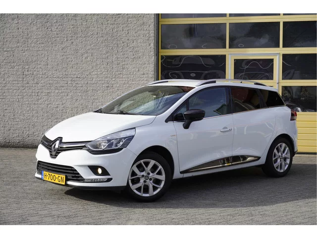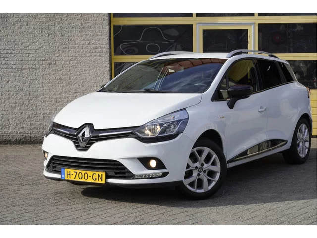 Renault Clio Estate met de zeer luxe aanwezige opties als Lichtmetalen velgen | Led dagrijverlichting | Parkeersensoren | Navigatiesysteem | Climate control | Cruise control | Keyless entry | Extra getint glas. 5 versn., Handgeschakeld; Modeljaar: 2018; 66 kW; 140 Nm; 3 cilinders; 898cc; Gewicht: 1.098kg; Laadvermogen: 556kg; GVW: 1.654kg; Max. trekgewicht: 1.200kg; LxBxH: 427x173x148cm; Wielbasis: 259cm; 45l tank; 0-100 km/h: 12,2s; Topsnelheid: 178km/u; Interieur: zwart, Stof; 5 zitplaatsen; 5,1 l/100km; 6,4 l/100km; 4,4 l/100km; 135 g/km CO₂; Energielabel C; Euro 6; Dealer onderhouden (onderhoudsboekjes aanwezig); Aantal eigenaren: 3; APK bij aflevering; Wegenbelasting: € 140-€ 154p/kwrt; H-700-GN