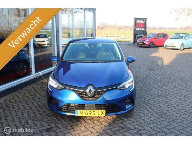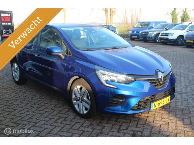 Renault Clio 1.0 TCe Business Zen Clima/Navi/Camera/Lane-Assist. Kenteken: N-695-LX; Merk: Renault; Model: Clio; APK tot: 21-07-2027; Tellerstand: 134488 KM; Carrosserievorm: Hatchback; Aantal deuren: 5; Brandstofsoort: Benzine; Bouwjaar: 2021; Transmissie: Handgeschakeld; Kleur: blauw; Motorinhoud: 999 cc; Aantal cilinders: 3; Motorcode: H4D E4; Vermogen: 67 kW / 91pk; Ledig gewicht: 1059 kg; Max. trekgewicht: 900 kg; Aantal zitplaatsen: 5; Verbruik: 4.9 l/100 km; BTW/Marge: BTW aftrekbaar, de prijs is inclusief BTW; Lengte: 405 cm; Breedte: 173 cm; Motorrijtuigenbelasting: € 145 - 158 per kwartaal; Emissieklasse: Euro 6. Pakket: Pack Comfort. Airco automatisch; Armsteun voor; Elektrische ramen achter; Keyless entry/start; Regensensor. Comfort. Cruise control; Regensensor. Exterieur. Achterruitwisser; Buitenspiegel rechts; Buitenspiegels elektrisch verstel- en verwarmbaar; Centrale vergrendeling met afstandsbediening; Chroom pakket; Dimlichten automatisch; LED achterlichten; LED...