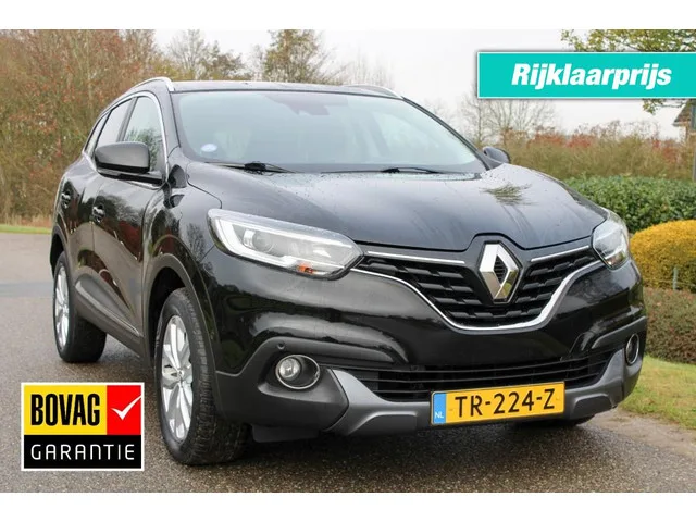 Origineel Nederlandse auto met logisch tellerrapport. ONZE prijs is RIJKLAAR INCLUSIEF 12 maanden Bovag Garantie, nieuwe APK, afleverbeurt, de Nationale Autopas, poetsen, volle tank en kentekenleges. GEEN meerprijs voor rijklaar maken. Geen meerprijs voor garantie. Zeer mooie, ruime, luxe, zuinige en schone Kadjar met sterke 1200cc 130pk motor, mag 1.500 kg trekken. Onderhoudshistorie aanwezig. Inruil, verzekering en financiering mogelijk. Vast telefoonnummer 055 - 5051295. Mobiel WhatsApp nummer 055 - 5051295. TR-224-Z. 6 versn., Handgeschakeld; 96 kW; 4 cilinders; 1.198cc; Gewicht: 1.281kg; Max. trekgewicht: 1.500kg; 5 zitplaatsen; 5,6 l/100km; 6,8 l/100km; 4,9 l/100km; 123 g/km CO₂; BOVAG Garantie (12 maanden); Wegenbelasting: € 199-€ 217p/kwrt; TR-224-Z