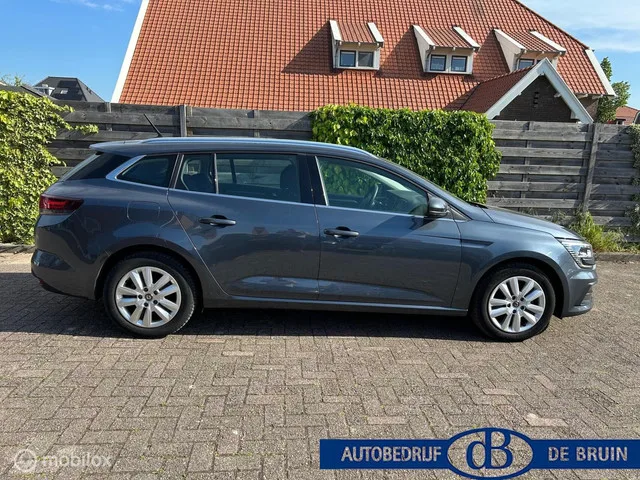 Renault Megane Estate 1.3 TCe Business Zen automaat trekhaak. Kenteken: L-009-NN; Merk: Renault; Model: Megane Estate; APK tot: 30-12-2026; Tellerstand: 89368 KM; Carrosserievorm: Station; Aantal deuren: 5; Brandstofsoort: Benzine; Bouwjaar: 2021; Transmissie: Automaat; Kleur: grijs; Bekleding: Stof; Kleur interieur: antraciet; Motorinhoud: 1330 cc; Aantal cilinders: 4; Motorcode: H5H B4; Vermogen: 103 kW / 140pk; Ledig gewicht: 1278 kg; Max. trekgewicht: 1700 kg; Aantal zitplaatsen: 5; Verbruik: 5.4 l/100 km; BTW/Marge: BTW aftrekbaar, de prijs is inclusief BTW; Lengte: 463 cm; Breedte: 181 cm; Aantal sleutels: 2; Motorrijtuigenbelasting: € 199 - 217 per kwartaal; Emissieklasse: Euro 6. Comfort. Boordcomputer; Cruise control; Regensensor. Exterieur. Achterruitwisser; Buitenspiegels elektrisch inklapbaar; Buitenspiegels elektrisch verstel- en verwarmbaar; Buitenspiegels in carrosseriekleur; Centrale vergrendeling met afstandsbediening; Chroom delen exterieur; Dakrails; Dimlichten...