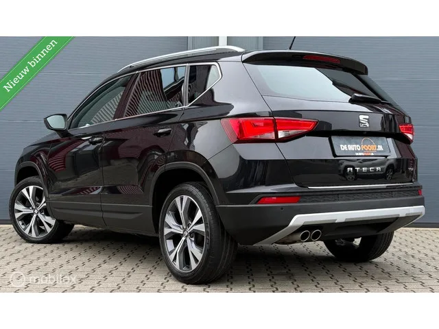 Seat Ateca 1.4 EcoTSI Xcellence Full-LED/Trekhaak/Winterpack. Merk: Seat; Model: Ateca; Tellerstand: 95623 KM; Carrosserievorm: SUV; Aantal deuren: 5; Brandstofsoort: Benzine; Bouwjaar: 2017; Transmissie: Handgeschakeld; Kleur: zwart Metallic; Motorinhoud: 1395 cc; Aantal cilinders: 4; Vermogen: 110 kW / 150pk; Ledig gewicht: 1259 kg; Max. trekgewicht: 1600 kg; Aantal zitplaatsen: 5; Verbruik: 5.3 l/100 km; BTW/Marge: Marge, de BTW is niet aftrekbaar; Onderhoudshistorie aanwezig: Ja. Pakket: Parkeer pakket. Parkeer assistent; Parkeersensor voor. Pakket: Upgrade Alcantara. Kunstlederen/microvezel bekleding. Pakket: Upgrade Winter. Koplampreiniging; Ruitensproeiers/wisserbladen verwarmbaar; Voorstoelen verwarmd. Comfort. Boordcomputer; Cruise control; Regensensor. Exterieur. Buitenspiegels elektrisch inklapbaar; Buitenspiegels elektrisch verstelbaar; Buitenspiegels met verlichting; Buitenspiegels verwarmbaar; Bumpers in carrosseriekleur; Centrale vergrendeling met afstandsbediening...