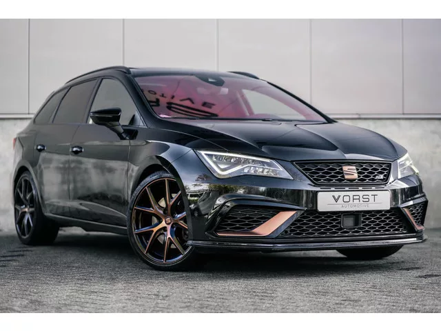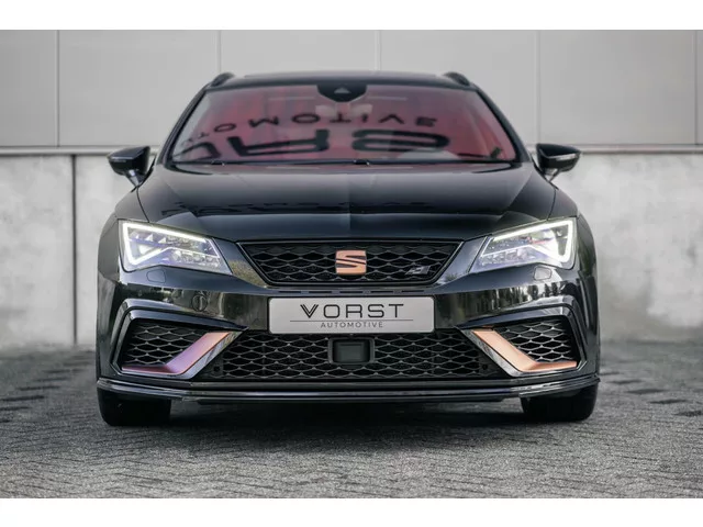 Bij deze verkopen wij een perfect Seat onderhouden CUPRA300 met schaalstoelen! Een bommetje en werkelijk een lust voor het oog! Seat Leon 2.0 ST TSI CUPRA 4Drive Pano Schaalstoelen Beats. Kenteken: X-955-GJ; Merk: Seat; Model: Leon ST; APK tot: 31-07-2026; Tellerstand: 87800 KM; Carrosserievorm: Station; Aantal deuren: 5; Brandstofsoort: Benzine; Bouwjaar: 2019; Transmissie: Automaat; Kleur: zwart; Kleur interieur: zwart; Motorinhoud: 1984 cc; Aantal cilinders: 4; Motorcode: DNU; Vermogen: 221 kW / 301pk; Ledig gewicht: 1457 kg; Max. trekgewicht: 750 kg; Aantal zitplaatsen: 5; Verbruik: 7.1 l/100 km; BTW/Marge: Marge, de BTW is niet aftrekbaar; Lengte: 455 cm; Breedte: 182 cm; Hoogte: 1451 cm; Aantal sleutels: 2; Onderhoudshistorie aanwezig: Ja; Motorrijtuigenbelasting: € 241 - 264 per kwartaal; Emissieklasse: Euro 6. Comfort. Boordcomputer; Regensensor. Exterieur. Buitenspiegels elektrisch inklapbaar; Buitenspiegels elektrisch verstel- en verwarmbaar; Dakrails; Dakspoiler...