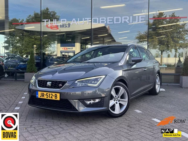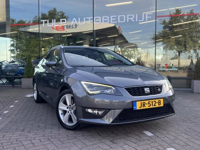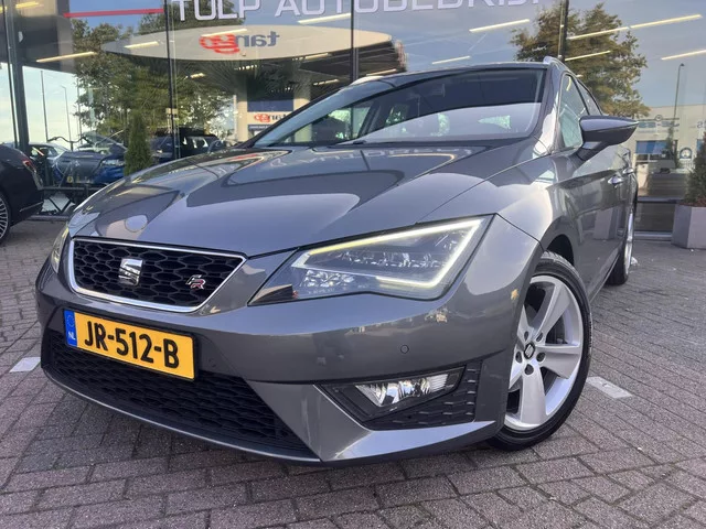 Zeer mooie en sportief uitgeruste Seat Leon ST FR connect met Business pakket van 2e eigenaar. Seat Leon ST 1.4 EcoTSI FR Connect Bsns LED Navi Mooie staat! Kenteken: JR-512-B; Merk: Seat; Model: Leon ST; APK tot: 23-08-2026; Tellerstand: 161688 KM; Carrosserievorm: Station; Aantal deuren: 5; Brandstofsoort: Benzine; Bouwjaar: 2016; Transmissie: Handgeschakeld; Kleur: grijs Metallic; Bekleding: Leder/Stof; Kleur interieur: zwart; Motorinhoud: 1395 cc; Aantal cilinders: 4; Motorcode: CZE; Vermogen: 110 kW / 150pk; Ledig gewicht: 1177 kg; Max. trekgewicht: 1500 kg; Aantal zitplaatsen: 5; Verbruik: 4.7 l/100 km; BTW/Marge: Marge, de BTW is niet aftrekbaar; Lengte: 454 cm; Breedte: 182 cm; Hoogte: 1451 cm; Aantal sleutels: 2; Onderhoudshistorie aanwezig: Ja; Motorrijtuigenbelasting: € 166 - 182 per kwartaal; Emissieklasse: Euro 6. Pakket: Upgrade Business Plus. Achteruitrijcamera; Alarmsysteem; Audio installatie premium; Binnenspiegel automatisch dimmend; Bluetooth; DAB; Dimlichten...