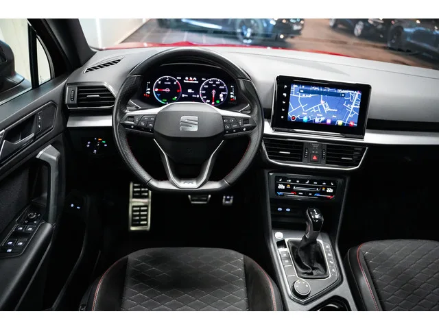 Een mooi complete Tarraco hybrid fr in de fraaie kleurstelling rood/zwart met o.a. 20 inch, panorama dak, camera, stoelverwarming voor en achter, stuurwielverwarming, adaptive cruise, keyless en apple car play. Meer informatie: Transmissie: 6 versnellingen, Automaat; Modeljaar: 2021; Vierwielaandrijving; Vermogen: 180 kW (245 PK); Koppel: 250 Nm; Aantal cilinders: 4; Motorinhoud: 1.395 cc; Ledig gewicht: 1.768 kg; Wielbasis: 279 cm; Tankinhoud: 45 liter; Acceleratie (0-100): 7,5 s; Topsnelheid: 205 km/u; Interieur: zwart, Leder/stof; 5 zitplaatsen; Gemiddeld brandstofverbruik: 1,8 l/100km (1 op 55,6); Energielabel: C; Dealer onderhouden (onderhoudsboekjes aanwezig); Onderhouden volgens voorschriften; Algemene staat: goed; 2 sleutels; Motorrijtuigenbelasting: € 333 - € 365 per kwartaal; Referentienummer: 502006
