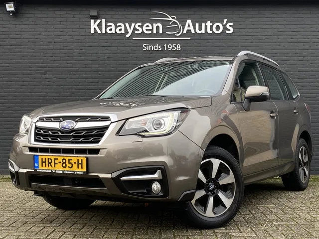 Zeer mooie en degelijke Subaru Forester 2.0 Luxury AWD 150 pk benzine automaat uitvoering! Origineel en dealer onderhouden voertuig, slechts 62.075 kilometer, met complete documentatie. Fraaie Luxury uitvoering voorzien van o.a. adaptieve cruise control, dakrails, trekhaak, panoramadak, achteruitrijcamera, x-mode, stoelverwarming, schakelflippers, climate control, bluetooth/DAB audio enz. 6 versn., Automaat; Modeljaar: 2017; 110 kW; 198 Nm; 4 cilinders; 1.995cc; Gewicht: 1.500kg; Laadvermogen: 515kg; GVW: 2.015kg; Max. trekgewicht: 2.000kg; LxBxH: 461x180x174cm; Wielbasis: 264cm; 60l tank; 0-100 km/h: 11,8s; Topsnelheid: 192km/u; Interieur: zwart, Stof; 5 zitplaatsen; 6,5 l/100km; 150 g/km CO₂; Energielabel B; Euro 6; Onderhouden volgens voorschriften; 100% Onderhouden; Eerste eigenaar; APK bij aflevering; Algemene staat: goed; Schadevrij; 2 sleutels (2 handzenders); BOVAG Garantie (12 maanden); BOVAG 40-Puntencheck; BOVAG Afleverbeurt; Wegenbelasting: € 243-€ 268p/kwrt; HRF-85-H