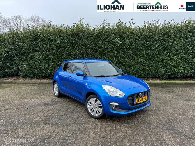 Suzuki Swift 1.2 Select. Kenteken: XK-439-L; Merk: Suzuki; Model: Swift; APK tot: 25-01-2027; Tellerstand: 97499 KM; Carrosserievorm: Hatchback; Aantal deuren: 5; Brandstofsoort: Benzine; Bouwjaar: 2019; Transmissie: Handgeschakeld; Kleur: blauw Metallic; Kleurnaam: SPEEDY BLUE-MET; Bekleding: Stof; Kleur interieur: grijs; Motorinhoud: 1242 cc; Aantal cilinders: 4; Motorcode: K12C; Vermogen: 66 kW / 90pk; Ledig gewicht: 815 kg; Max. trekgewicht: 1000 kg; Aantal zitplaatsen: 5; Verbruik: 4.6 l/100 km; BTW/Marge: Marge, de BTW is niet aftrekbaar; Lengte: 384 cm; Breedte: 174 cm; Hoogte: 1480 cm; Aantal sleutels: 2; Onderhoudshistorie aanwezig: Ja; Motorrijtuigenbelasting: € 70 - 76 per kwartaal; Emissieklasse: Euro 6. Comfort. Boordcomputer. Exterieur. Buitenspiegels elektrisch verstel- en verwarmbaar; Buitenspiegels in carrosseriekleur; Bumpers in carrosseriekleur; Centrale vergrendeling met afstandsbediening; Dimlichten automatisch; Extra getint glas achter; LED dagrijverlichting...
