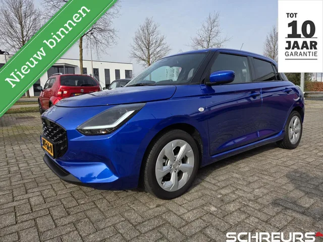 Suzuki Swift 1.2 Select Smart Hybrid|PDC|LED lampen|Camera|Rijklaar prijs|mooie complete auto|. Kenteken: JVT-66-H; Merk: Suzuki; Model: Swift; APK tot: 24-03-2029; Tellerstand: 5375 KM; Carrosserievorm: Hatchback; Aantal deuren: 5; Brandstofsoort: Benzine; Bouwjaar: 2025; Transmissie: Handgeschakeld; Kleur: blauw; Motorinhoud: 1197 cc; Aantal cilinders: 3; Vermogen: 60 kW / 82pk; Ledig gewicht: 894 kg; Max. trekgewicht: 1000 kg; Aantal zitplaatsen: 5; Verbruik: 4.4 l/100 km; BTW/Marge: BTW aftrekbaar, de prijs is inclusief BTW; Lengte: 386 cm; Breedte: 174 cm; Motorrijtuigenbelasting: € 92 - 99 per kwartaal; Emissieklasse: Euro 6. Comfort. Boordcomputer. Exterieur. Buitenspiegels elektrisch verstel- en verwarmbaar; Dakspoiler; Dimlichten automatisch; Extra getint glas achter; Keyless entry; LED achterlichten; LED dagrijverlichting; LED koplampen; LED koplampen, automatische lichtschakeling; Lichtmetalen velgen 16"; Metaalkleur parelmoer; Parkeersensor achter; Warmtewerend glas. ...