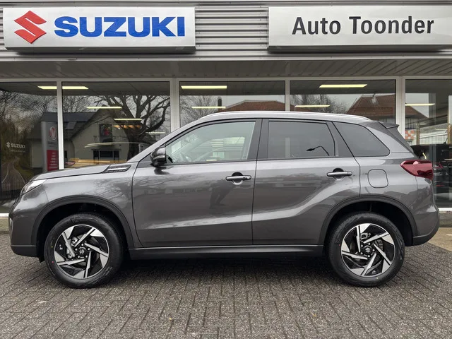 Genoemde prijs is een rijklaarprijs incl. afleverpakket. Betreft een nieuwe Suzuki Vitara Automaat 1.4 Boosterjet Smart Hybrid Style. Kijk voor de voorwaarden op suzuki.nl. Meer informatie: Transmissie: 6 versnellingen, Automaat; Nieuwe auto; Modeljaar: 2025; Vierwielaandrijving; Vermogen brandstofmotor: 82 kW (111 PK); Koppel: 235 Nm; Aantal cilinders: 4; Motorinhoud: 1.373 cc; Ledig gewicht: 1.180 kg; Max. trekgewicht: 1.500 kg (ongeremd 600 kg); LxBxH: 418 x 178 x 160 cm; Wielbasis: 250 cm; Tankinhoud: 47 liter; Acceleratie (0-100): 10,1 s; Topsnelheid: 180 km/u; Bekleding: Leder/alcantara; 5 zitplaatsen; Gemiddeld brandstofverbruik: 5,7 l/100km (1 op 17,5); Energielabel: C; Dealer onderhouden (onderhoudsboekjes aanwezig); Motorrijtuigenbelasting: € 172 - € 188 per kwartaal