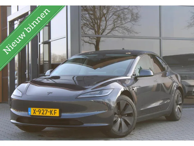 Deze auto is recent bij ons binnen gekomen en wordt op dit moment gepoetst. De complete fotoserie volgt spoedig. Voor vragen helpen wij u graag. Alle moeite is genomen om de informatie in deze advertentie zo accuraat en actueel mogelijk weer te geven. Fouten zijn echter nooit uit te sluiten. Vertrouw daarom niet alleen op deze informatie, maar controleer bij aankoop de zaken die uw beslissing zouden kunnen beïnvloeden. Tesla Model 3 RWD 60 kWh | Afneembare Trekhaak | Org. NL. Kenteken: X-927-KF; Merk: Tesla; Model: Model 3; APK tot: 12-12-2027; Tellerstand: 61930 KM; Carrosserievorm: Hatchback; Aantal deuren: 5; Brandstofsoort: Elektrisch; Accucapaciteit: 60 kWh; Actieradius: 513 km; Bouwjaar: 2023; Transmissie: Automaat; Kleur: grijs; Bekleding: Leder; Kleur interieur: zwart; Motorcode: 3D7; Vermogen: 208 kW / 283pk; Ledig gewicht: 1736 kg; Max. trekgewicht: 1000 kg; Aantal zitplaatsen: 5; BTW/Marge: Marge, de BTW is niet aftrekbaar; Lengte: 472 cm; Breedte: 185 cm; Hoogte: 1441 cm...