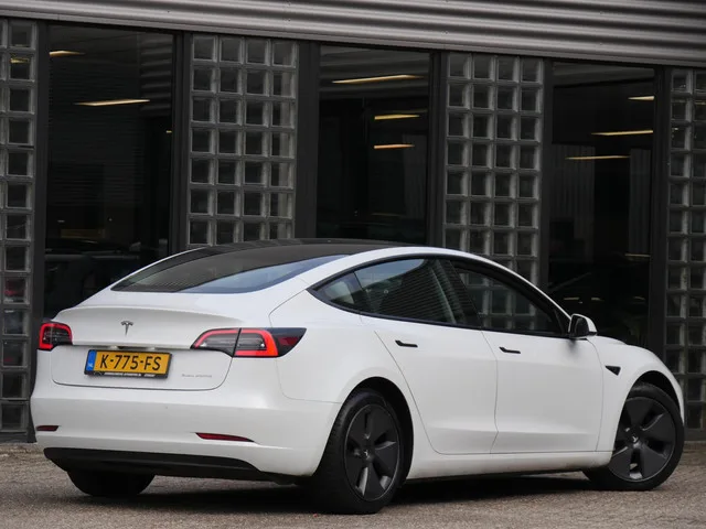 Inruil van elk merk is mogelijk. Nieuw model Tesla Model 3 welke in 2020 geintroduceerd werd. Het nieuwe model is voorzien van een nieuw design koplampen, matzwarte accenten i.p.v chromen accenten en een elektrisch bedienbare achterklep. . Onderhuids is de vernieuwde Tesla Model 3 flink gewijzigd. Standaard op dit nieuwe model is de warmtepomp voor een betere actieradius. Het audiosysteem is geupgraded naar het 'Premium Audiosysteem' en er is standaard dubbel glas aanwezig waardoor het nog stiller is in het interieur. Modeljaar: 2018; 4WD; 258 kW; 527 Nm; Gewicht: 1.819kg; Laadvermogen: 413kg; GVW: 2.232kg; LxB: 469x185cm; Wielbasis: 288cm; Accu: 75kWh; Accu laden: 11 kW; Accu snelladen: 250 kW; Actieradius: 602 km; 0-100 km/h: 4,8s; Topsnelheid: 233km/u; Interieur: Zwart leder, Stof; 5 zitplaatsen; 13,2 kWh/100km; 0 g/km CO₂; Energielabel A; APK: tot dec. 2026; 1 sleutel; Wegenbelasting: € 233-€ 255p/kwrt; vanaf € 348 p/m (informeer naar de mogelijkheden en voorwaarden); K-775-FS