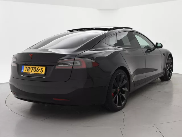 Model S 100D met de 100 kWh accu in de Performance uitvoering met 612 PK in plaats van de standaard 418 PK die de gewone 100D heeft. 613 km actieradius volgens fabrieksopgave, RDW nieuwprijs 162.450 euro, Zwart met zwart leder interieur en zwarte alcantara hemelbekleding, Rode Tesla logo's, Verbeterde Autopilot Enhanced Autopilot 2.5, Stuurwielverwarming, Stoelverwarming voor + achterin, 21 inch hoogglans zwarte velgen, Panorama schuif/kanteldak elektrisch bedienbaar, Carbon interieur pakket met carbon dashboard inleg, Achteruitrijcamera, Spotify, Spelletjes en apps, Digitale radio, LED koplampen, LED achterlichten, Adaptive cruise control, Luchtvering met regelbare rijhoogte, . Iedere werkdag geopend van 08.00 tot 20.00 uur en zaterdag van 09.00 tot 17.00 uur. De door ons genoemde communicatieadviesprijzen zijn inclusief onvermijdbare kosten benodigd voor levering van de auto. Optionele pakketten en-/of uitrusting zijn altijd een keuze van de consument en worden tegen meerprijs...