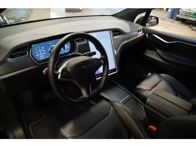 Tesla Model X 100D, Origineel Nederlands, BTW verrekenbaar, Alles volledig zwart uitgevoerd, Camera's rondom, LED verlichting, Lederen bekleding, Carbon interieur delen, Extra getint glas achter, Luchtvering, Autopilot, Stoelverwarming, Elektrische deuren voor + achter, Elektrische achterklep, . Voorbumper is niet netjes gespoten, velgen hebben beschadigingen die ingekleurd zijn, het leer boven het scherm is beschadigd. Modeljaar: 2016; 4WD; 307 kW; 967 Nm; Gewicht: 2.433kg; Laadvermogen: 646kg; GVW: 3.079kg; Max. trekgewicht: 2.250kg; LxB: 505x200cm; Wielbasis: 297cm; Accu: 100kWh; Accu laden: 16.5 kW; Accu snelladen: 120 kW; Actieradius: 565 km; 0-100 km/h: 4,9s; Topsnelheid: 250km/u; 5 zitplaatsen; 16,6 kWh/100km; 0 g/km CO₂; Energielabel A; APK: tot mei 2026; Wegenbelasting: € 346-€ 378p/kwrt; vanaf € 363 p/m (informeer naar de mogelijkheden en voorwaarden); Beschikbare afleverpakketten: Servicepakket 1 (€ 495); Servicepakket 2 (€ 695); SN-772-T