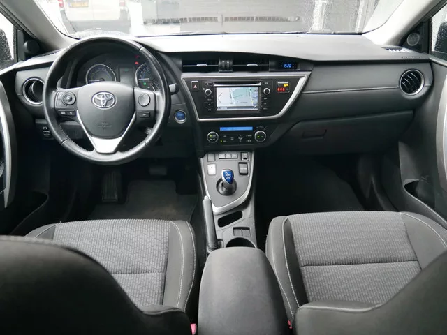 Toyota Auris 1.8 Hybrid Dynamic Camera| Trekhaak| Navi+BT. Kenteken: HLH-05-R; Merk: Toyota; Model: Auris; Tellerstand: 70575 KM; Carrosserievorm: Hatchback; Aantal deuren: 5; Brandstofsoort: Hybride (Elektrisch/Benzine); Bouwjaar: 2015; Transmissie: Automaat; Kleur: grijs Metallic; Bekleding: Stof; Kleur interieur: zwart; Motorinhoud: 1798 cc; Aantal cilinders: 4; Vermogen: 73 kW / 99pk; Aantal zitplaatsen: 5; Verbruik: 3.6 l/100 km; BTW/Marge: Marge, de BTW is niet aftrekbaar; Aantal sleutels: 2; Onderhoudshistorie aanwezig: Ja. Comfort. Cruise control; Regensensor. Exterieur. Afst. bed. voor centr. deurvergr; Buitenspiegels elektrisch inklapbaar; Buitenspiegels elektrisch verstel- en verwarmbaar; Buitenspiegels in carrosseriekleur; Bumpers in carrosseriekleur; Chroom delen exterieur; Dimlichten automatisch; Extra getint glas achter; Keyless entry; LED achterlichten; LED dagrijverlichting; Lichtmetalen velgen 16"; Mistlampen voor; Sportvelgen; Trekhaak. Infotainment. DAB...