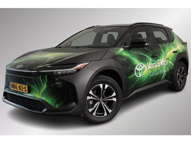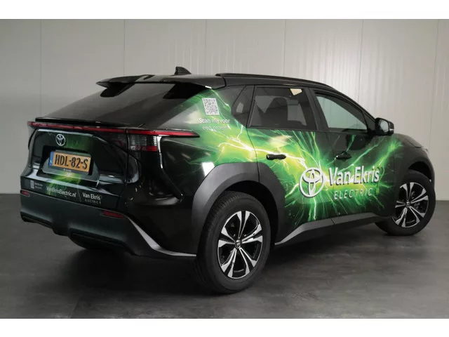 ... Zie je het al voor je, deze opvallend gewrapte bZ4X met jouw bedrijfslogo erop? Nu staan er uiteraard Van Ekris logo's op maar bij aanschaf kunnen we jouw logo ook laten plaatsen. De volledige wrap blijft dan zitten en maak je van deze bZ4X een rijdende reclame zuil voor jouw bedrijf!  . Vindt je de wrap te opzichtig is dat geen probleem, onder de wrap zit een chique bZ4X in de stoere Bi-tone kleurencombinatie Precious Metal met zwart dak. De BZ4X is zeer luxe uitgevoerd met opties en extra's zoals: Panoramadak Dode hoek waarschuwing, Keyless entry, 360graden camera, Elektrische achterklep, Stoelverwarming voor, Stuurwielverwarming, Voorruit verwarming, Navigatie, DAB radio, Volledig elektrische bestuurderstoel met lende steun, Parkeersensoren voor en achter, Draadloze telefoonlader, Alarm klasse 3, Volledige LED verlichting voor en achter en nog veel meer! Deze Dynamic uitvoering heeft een rijbereik van 475km WLTP en kan snelladen tot 150kW. Thuis laden kan met de meegeleverde...