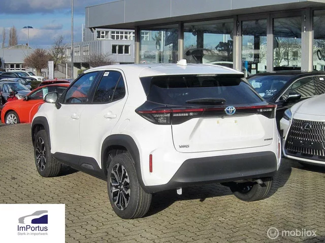 Toyota Yaris Cross 1.5 Hybrid 130 Dynamic Teamplayer Winterpack. Merk: Toyota; Model: Yaris Cross; Tellerstand: 1 KM; Carrosserievorm: SUV; Aantal deuren: 5; Brandstofsoort: Hybride (Elektrisch/Benzine); Bouwjaar: 2025; Transmissie: Automaat; Kleur: wit; Kleurnaam: Wit; Bekleding: Stof; Kleur interieur: antraciet; Motorinhoud: 1490 cc; Aantal cilinders: 3; Vermogen: 96 kW / 131pk; Ledig gewicht: 1150 kg; Max. massa voertuig: 1690 kg; Max. trekgewicht: 750 kg; Aantal zitplaatsen: 5; Verbruik: 4.5 l/100 km; BTW/Marge: BTW aftrekbaar, de prijs is inclusief BTW; Aantal sleutels: 2; Onderhoudshistorie aanwezig: Ja; Aantal maanden fabrieksgarantie: 360; Bandenmaat voor: 215/55/17; Bandemaat achter: 215/55/17. Comfort. Regensensor. Exterieur. Achterruitwisser; Buitenspiegels elektrisch verstelbaar; Buitenspiegels verwarmbaar; Centrale vergrendeling; Dakrails; Dakspoiler; Dimlichten automatisch; Extra getint glas achter; Getint glas; Keyless entry; LED achterlichten; LED dagrijverlichting...