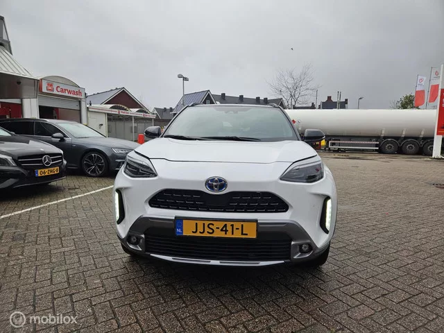 Toyota Yaris Cross 1.5 Hybrid Adventure. Kenteken: JJS-41-L; Merk: Toyota; Model: Yaris Cross; APK tot: 11-10-2027; Tellerstand: 16247 KM; Carrosserievorm: SUV; Aantal deuren: 5; Brandstofsoort: Hybride (Elektrisch/Benzine); Bouwjaar: 2023; Transmissie: Automaat; Kleur: wit; Motorinhoud: 1490 cc; Aantal cilinders: 3; Motorcode: M15A; Vermogen: 68 kW / 93pk; Ledig gewicht: 1190 kg; Max. trekgewicht: 750 kg; Aantal zitplaatsen: 5; Verbruik: 5 l/100 km; BTW/Marge: Marge, de BTW is niet aftrekbaar; Breedte: 177 cm; Motorrijtuigenbelasting: € 166 - 182 per kwartaal; Emissieklasse: Euro 6. Comfort. Regensensor. Exterieur. Buitenspiegels elektrisch inklapbaar; Buitenspiegels elektrisch verstel- en verwarmbaar; Buitenspiegels elektrisch verstelbaar; Buitenspiegels verwarmbaar; Dakrails; Dakspoiler; Dimlichten automatisch; Extra getint glas achter; Keyless entry; LED achterlichten; LED dagrijverlichting; Lichtmetalen velgen 18"; Parkeersensor achter; Parkeersensor voor; Verwarmde voorruit. ...