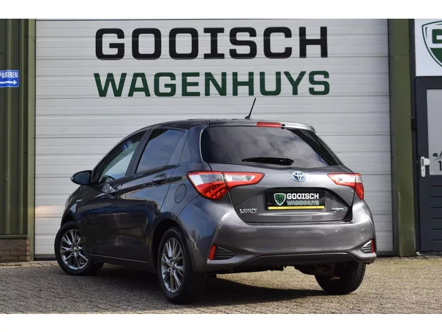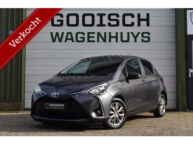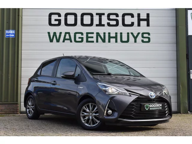 Toyota Yaris 1.5 Hybrid Dynamic | Camera | Carplay | Keyless |. Kenteken: G-517-RL; Merk: Toyota; Model: Yaris; APK tot: 27-11-2025; Tellerstand: 134428 KM; Carrosserievorm: Hatchback; Aantal deuren: 5; Brandstofsoort: Hybride (Elektrisch/Benzine); Bouwjaar: 2019; Transmissie: Automaat; Kleur: grijs; Bekleding: Stof; Kleur interieur: zwart; Motorinhoud: 1497 cc; Aantal cilinders: 4; Motorcode: 1NZ; Vermogen: 55 kW / 75pk; Vermogen verbrandingsmotor: 10 kW; Ledig gewicht: 1050 kg; Aantal zitplaatsen: 5; Verbruik: 3.7 l/100 km; BTW/Marge: BTW aftrekbaar, de prijs is inclusief BTW; Lengte: 395 cm; Breedte: 170 cm; Aantal sleutels: 2; Onderhoudshistorie aanwezig: Ja; Motorrijtuigenbelasting: € 114 - 125 per kwartaal; Emissieklasse: Euro 6. Pakket: Multimedia pack. DAB; Multimedia-voorbereiding; Navigatiesysteem full map. Comfort. Cruise control; Regensensor. Exterieur. Achterruitwisser; Buitenspiegel rechts; Buitenspiegels elektrisch verstelbaar; Buitenspiegels in carrosseriekleur...