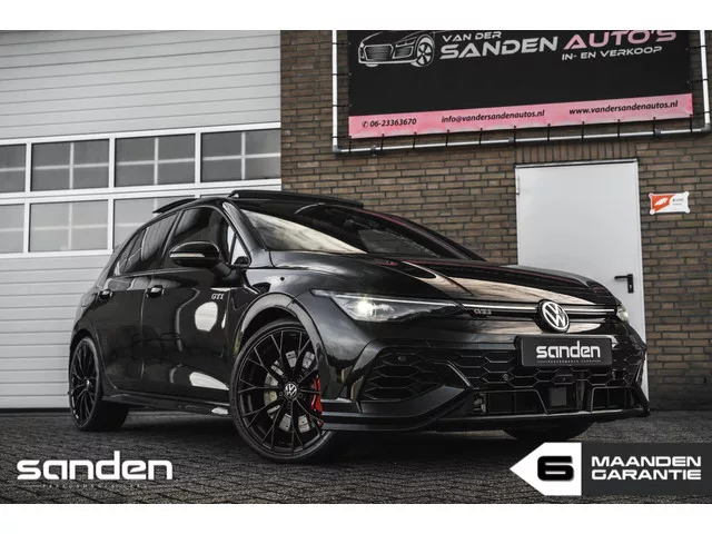 Volkswagen Golf 2.0 TSI GTI Clubsport|8.5CS|Panoramadak|Akrapovic|H&K|Leder|Head-Up|IQ Light|360˚Cam|BlackStyle|Nürburgring|Memory. Volkswagen Golf 2.0 GTI Clubsport|Akra|Pano|HK|HUD|360|Leder. Merk: Volkswagen; Model: Golf; Tellerstand: 30550 KM; Carrosserievorm: Hatchback; Aantal deuren: 5; Brandstofsoort: Benzine; Bouwjaar: 2025; Transmissie: Automaat; Kleur: zwart Metallic; Bekleding: Leder; Kleur interieur: zwart; Motorinhoud: 1984 cc; Aantal cilinders: 4; Vermogen: 220 kW / 300pk; Ledig gewicht: 1354 kg; Aantal zitplaatsen: 5; Verbruik: 7.1 l/100 km; BTW/Marge: Marge, de BTW is niet aftrekbaar; Aantal sleutels: 2; Onderhoudshistorie aanwezig: Dealer onderhouden; Fabrieksgarantie tot: 20-01-2027; Velgmaat: 19 inch. Pakket: Assistance pakket. Bots herkenning en activatie; Rondomzicht camera; Zij airbag(s) achter. Pakket: Black Style Pakket. Buitenspiegels in andere kleur; Zwarte (glans) exterieur delen. Pakket: Leder pakket. Elektrisch verstelb. bestuurdersstoel met geheugen...