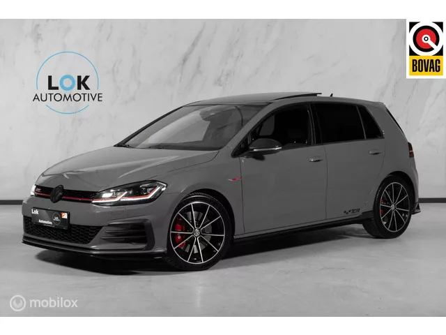 Volkswagen Golf 2.0 TSI GTI TCR|PANO|DYN|KEYLESS|LED|ACC|. Kenteken: HJL-69-L; Merk: Volkswagen; Model: Golf; APK tot: 25-03-2027; Tellerstand: 105675 KM; Carrosserievorm: Hatchback; Aantal deuren: 5; Brandstofsoort: Benzine; Bouwjaar: 2019; Transmissie: Automaat; Kleur: grijs; Bekleding: Alcantara; Motorinhoud: 1984 cc; Aantal cilinders: 4; Vermogen: 213 kW / 290pk; Ledig gewicht: 1410 kg; Aantal zitplaatsen: 5; Verbruik: 6.7 l/100 km; BTW/Marge: Marge, de BTW is niet aftrekbaar; Aantal sleutels: 2; Onderhoudshistorie aanwezig: Ja. Comfort. Boordcomputer; Cruise control; Regensensor. Exterieur. Achterruitwisser; Adaptief demping systeem; Buitenspiegels elektr. met geheugen; Buitenspiegels elektrisch inklapbaar; Buitenspiegels elektrisch verstel- en verwarmbaar; Buitenspiegels elektrisch verstelbaar; Buitenspiegels in carrosseriekleur; Buitenspiegels met verlichting; Buitenspiegels verwarmbaar; Centrale vergrendeling; Centrale vergrendeling met afstandsbediening; Dakspoiler...