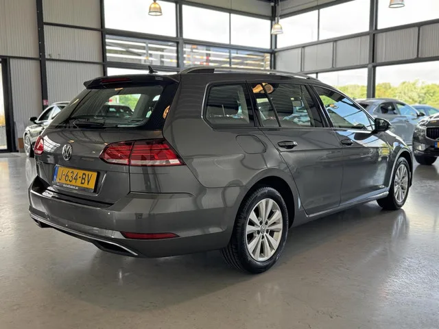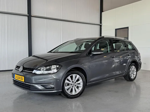 Volkswagen Golf Variant 1.0 TSI 85kW Comfortline Business. Kenteken: J-634-BV; Merk: Volkswagen; Model: Golf Variant; APK tot: 21-07-2026; Tellerstand: 129965 KM; Carrosserievorm: Station; Aantal deuren: 5; Brandstofsoort: Benzine; Bouwjaar: 2020; Transmissie: Handgeschakeld; Kleur: grijs Metallic; Kleurnaam: Indium Grey; Motorinhoud: 999 cc; Aantal cilinders: 3; Motorcode: DKR; Vermogen: 85 kW / 116pk; Ledig gewicht: 1200 kg; Max. trekgewicht: 1300 kg; Aantal zitplaatsen: 5; Verbruik: 5.4 l/100 km; BTW/Marge: BTW aftrekbaar, de prijs is inclusief BTW; Lengte: 457 cm; Breedte: 180 cm; Aantal sleutels: 2; Onderhoudshistorie aanwezig: Ja; Motorrijtuigenbelasting: € 172 - 188 per kwartaal; Emissieklasse: Euro 6. Comfort. Boordcomputer. Exterieur. Buitenspiegels elektrisch verstel- en verwarmbaar; Buitenspiegels in carrosseriekleur; Centrale vergrendeling met afstandsbediening; Dakrails; LED achterlichten; LED dagrijverlichting; Lichtmetalen velgen 16"; Metaalkleur; Mistlampen voor...