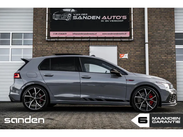 Prachtige Volkswagen Golf GTI Clubsport in Nardo Grey|300pk|Panorama|Harman/Kardon|Nürburgring modus|IQ. Light|19"|Stoelverwarming. Volkswagen Golf 2.0 TSI GTI Clubsport|Pano|H&K|Nürburgring. Kenteken: T-442-LJ; Merk: Volkswagen; Model: Golf; APK tot: 15-04-2027; Tellerstand: 62400 KM; Carrosserievorm: Hatchback; Aantal deuren: 5; Brandstofsoort: Benzine; Bouwjaar: 2021; Transmissie: Automaat; Kleur: grijs; Kleurnaam: Nardo Grey; Bekleding: Alcantara; Kleur interieur: zwart; Motorinhoud: 1984 cc; Aantal cilinders: 4; Motorcode: DNF; Vermogen: 221 kW / 301pk; Ledig gewicht: 1361 kg; Aantal zitplaatsen: 5; Verbruik: 7.1 l/100 km; BTW/Marge: Marge, de BTW is niet aftrekbaar; Lengte: 430 cm; Breedte: 179 cm; Aantal sleutels: 2; Onderhoudshistorie aanwezig: Ja; Motorrijtuigenbelasting: € 217 - 240 per kwartaal; Emissieklasse: Euro 6; Velgmaat: 19 inch. Pakket: Assistentie Pakket. Buitenspiegels elektrisch inklapbaar; Buitenspiegels met verlichting; Dodehoek detectie; File assistent...