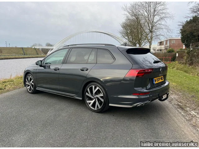 Volkswagen Golf Variant 1.5 eTSI R-Line |Vol opties|Trekhaak. Kenteken: N-009-ND; Merk: Volkswagen; Model: Golf Variant; APK tot: 18-09-2027; Tellerstand: 161292 KM; Carrosserievorm: Station; Aantal deuren: 5; Brandstofsoort: Hybride (Elektrisch/Benzine); Bouwjaar: 2021; Transmissie: Automaat; Kleur: grijs; Motorinhoud: 1498 cc; Aantal cilinders: 4; Motorcode: DFY; Vermogen: 110 kW / 150pk; Ledig gewicht: 1325 kg; Max. trekgewicht: 1500 kg; Aantal zitplaatsen: 5; Verbruik: 5.9 l/100 km; BTW/Marge: BTW aftrekbaar, de prijs is inclusief BTW; Breedte: 179 cm; Aantal sleutels: 2; Onderhoudshistorie aanwezig: Ja; Motorrijtuigenbelasting: € 199 - 217 per kwartaal; Emissieklasse: Euro 6. Pakket: Comfort pakket. Achteruitrijcamera; Keyless entry; Ruitensproeiers/wisserbladen verwarmbaar; Stuur verwarmd; Voorstoelen verwarmd. Pakket: Winter pakket. Ruitensproeiers/wisserbladen verwarmbaar; Stuur verwarmd; Voorstoelen verwarmd. Comfort. Regensensor. Exterieur. Buitenspiegels elektr. met...