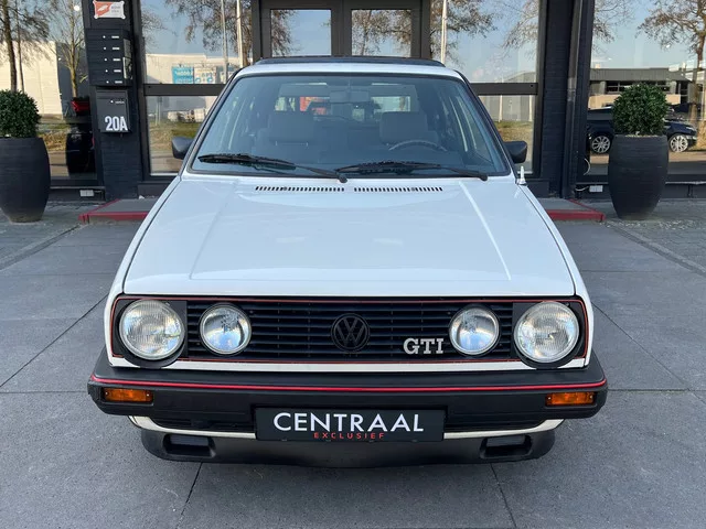 Graag bieden wij u deze zeer nette Volkswagen Golf GTI aan. De auto verkeerd in een zeer goede staat, verder zijn ook het originele instructie boek en service boek aanwezig. De Golf GTI staat bekend als een auto die ontzettend veel rijplezier biedt voor relatief weinig geld. Dankzij een lichtgewicht en de sportieve uitvoering met een 1.8-liter motor met 112 pk sprint de auto in 8,6 seconden naar 100 km/u en is het nemen van bochten een lust. Veel exemplaren zijn in de loop der tijd misbruikt en een mooi en onverprutst exemplaar wordt dan ook steeds schaarser. Het door ons aangeboden exemplaar is een zeer fraai bewaard gebleven Golf. Op 3 juli 1987 is de VW voor het eerste geleverd, de goede optische en technische staat duiden op de zorg die de auto gehad heeft van een liefhebber. Ook de motorruimte is uiterst netjes en droog. Roest is niet te vinden op dit exemplaar. In het interieur waant u zich terug in de jaren "80: alles is functioneel en degelijk. De kenmerkende 'golfbal'...