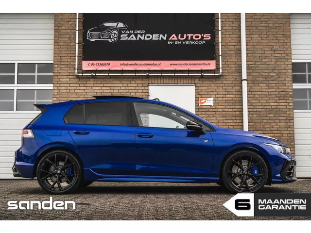 Volkswagen Golf 2.0 TSI 4Motion R|8.5R|Panoramadak|Akrapovic|H&K|Keyless|Head-Up|IQ light|Matrix LED|360 Cam|Zwart dak|Black Style. Volkswagen Golf 2.0R 4Motion|Drift|Akra|Pano|H&K|HUD|360|BTW. Merk: Volkswagen; Model: Golf; Tellerstand: 15100 KM; Carrosserievorm: Hatchback; Aantal deuren: 5; Brandstofsoort: Benzine; Bouwjaar: 2025; Transmissie: Automaat; Kleur: blauw Metallic; Kleurnaam: Lapiz Blue; Bekleding: Alcantara; Kleur interieur: zwart; Motorinhoud: 1984 cc; Aantal cilinders: 4; Vermogen: 245 kW / 334pk; Ledig gewicht: 1448 kg; Aantal zitplaatsen: 5; Verbruik: 8.2 l/100 km; BTW/Marge: BTW aftrekbaar, de prijs is inclusief BTW; Aantal sleutels: 2; Onderhoudshistorie aanwezig: Dealer onderhouden; Velgmaat: 19 inch. Pakket: Assistance pakket. Bots herkenning en activatie; Rondomzicht camera; Zij airbag(s) achter. Pakket: Black Style Pakket. Buitenspiegels in andere kleur; Zwarte (glans) exterieur delen. Pakket: Multimedia pakket plus. Audio installatie premium; Head-up display...