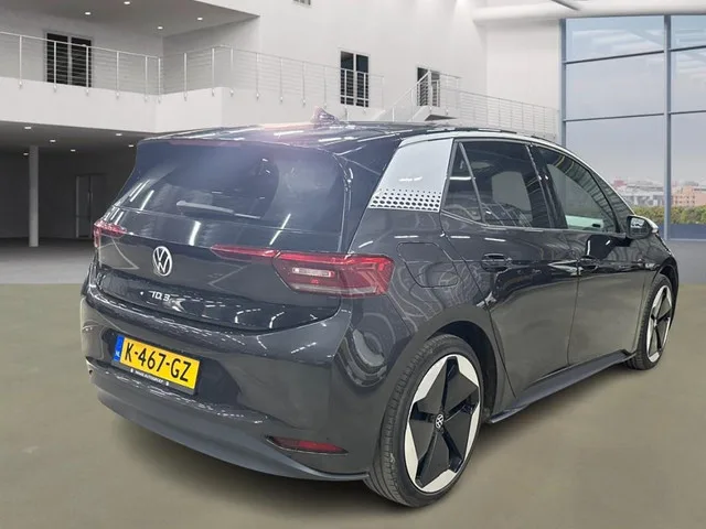 Volkswagen ID.3 First Max 58 kWh /SOH 91%/ VOL OPTIES / PANO / HUD. Meer informatie: Vermogen: 150 kW (204 PK); Ledig gewicht: 1.694 kg; Laadvermogen: 566 kg; GVW: 2.260 kg; LxBxH: 426 x 181 x 157 cm; Wielbasis: 277 cm; Aanwezige accu: gekocht; Accu: 58 kWh; Accu laden: Type 2, 3-fasen, 11 kW, 84 km actieradius per uur, compleet vol in 16 uur en 6 minuten; Accu snelladen: Combined Charging System, 477 km actieradius per uur, compleet vol in 2 uur en 38 minuten; Actieradius: 424 km; Acceleratie (0-100): 7,3 s; Topsnelheid: 160 km/u; 5 zitplaatsen; Gemiddeld elektriciteitsverbruik: 13,679245283019 kWh/100km; APK gekeurd tot dec. 2026; Schadevrij; 2 sleutels (2 handzenders); Motorrijtuigenbelasting: € 206 - € 228 per kwartaal; Optioneel afleverpakket: Bovag Garantie (€ 895); Referentienummer: K-467-GZ